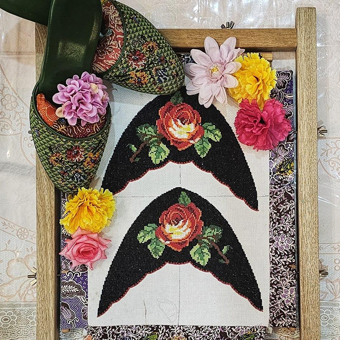 From kasut manek (beaded shoes) to handmade pouches and accessories, each piece Angeline makes is stitched with tradition and care. Her preferred material — Czech beads — adds a refined shine, chosen for both beauty and authenticity.